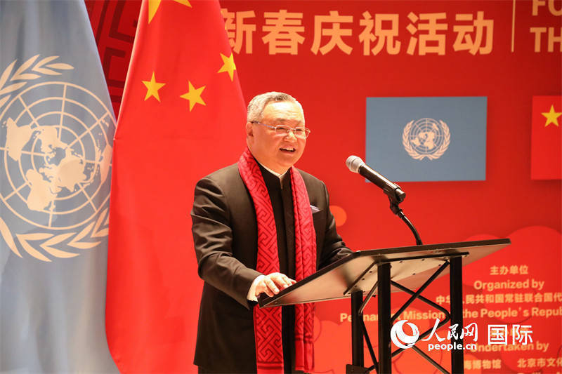 当地时分2月9日晚,中国常驻聚会国代表团在纽约聚会国总部举办“骏启新程”新春庆祝举止。图为中国常驻聚会国代表傅聪发表致辞。东谈主民网记者 李志伟摄