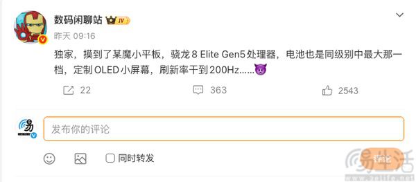 这次曝光的干系信息知道,红魔游戏平板5 Pro除了将按惯例搭载现金旗舰主控高通第五代骁龙8至尊版外,其电板容量将会是同级别中最大的。除此除外,连年来连续攀升的屏幕刷新率在这款机型上或将达到新的高度,据称其可能会配备一块最高刷新率达到200Hz的小尺寸OLED屏幕。