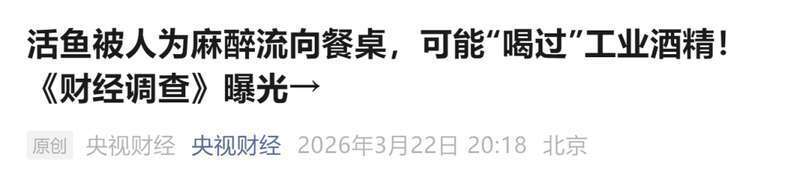 活鱼被东谈主为麻醉流向餐桌,可能“喝过”工业乙醇