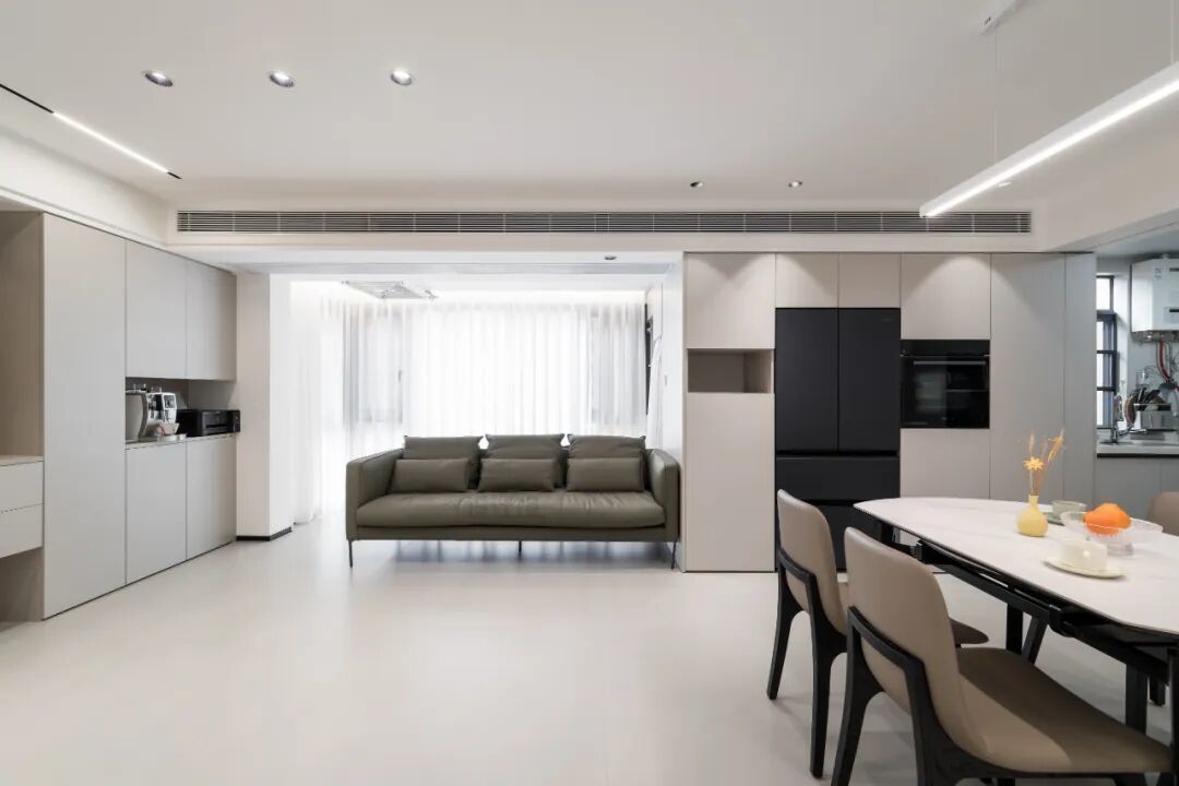 中央空调的风口,若就按风口尺寸作念挡板的话,就等于在吊顶上加了一个缺口,若思作念出高等有线条感的联想,不错把风口挡板加长,加多吊顶的视觉蔓延感。