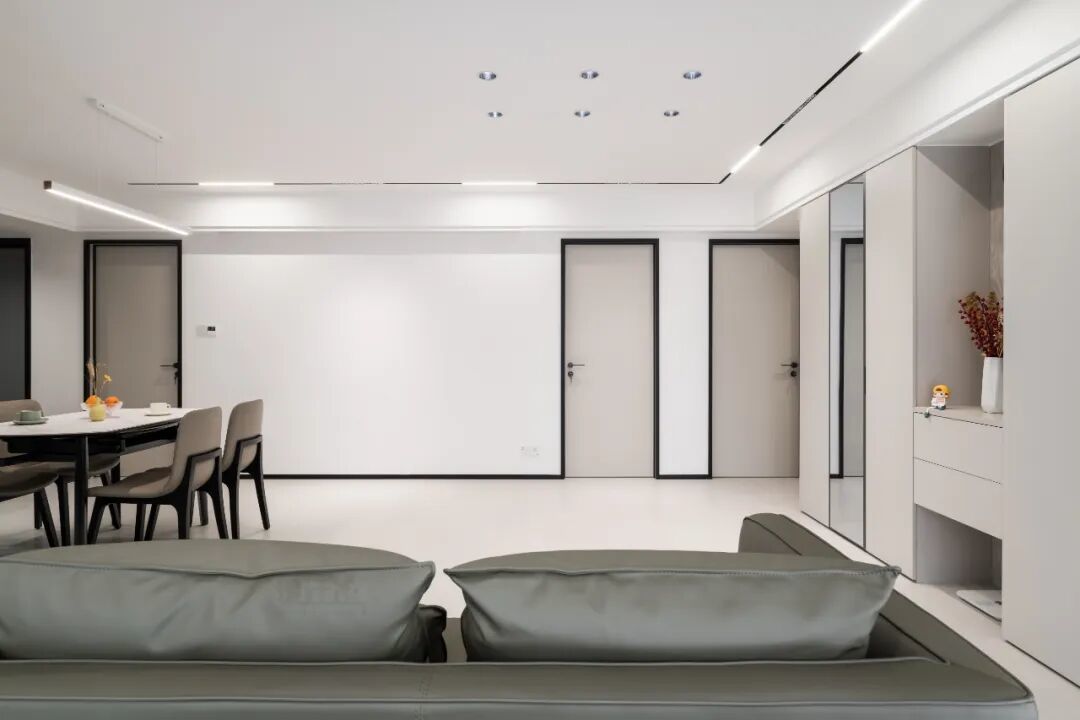 而墙面平整的装修,踢脚线、门套线与墙面之间着实莫得破绽,细节收口严丝合缝,何况灯光打在墙面上,也不会有暗影,效力好意思不雅。