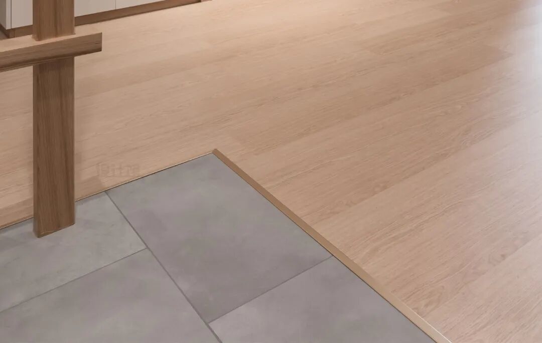 家里装修同期用到了地砖与木地板,那么地砖与木地板之间,填缝剂是不合适的,但不措置破绽又会很出丑。这个破绽的措置,不错用金属收边条压上去,破绽挡住就能齐备过渡,让细节更细腻。