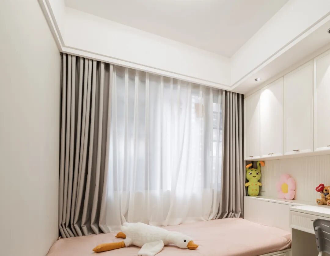 无论装修预算再低,窗帘盒亦然要作念的,一方面是为了好意思不雅,一方面是幸免窗帘顶部漏光;为了全体装修效力计议,窗帘盒不错跟吊顶造型联结起来作念。